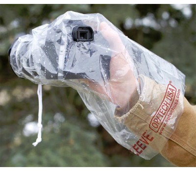 The Rainsleeve from OP/TECH USA is the must-have accessory for avid outdoor photographers, offering a shield from the elements (from rain, sand and snow) that fits easily in the pocket or camera bag. It features a unique eyepiece opening that adapts to most camera viewfinders, allowing composition of shots through the camera’s lens, not through the plastic. All camera and lens controls are easily seen and operated through the Rainsleeve. It can be used either hand-held or on a tripod. If shooting with a long lens, the tripod mount can be attached directly through the pliable plastic. If shooting using an OP/TECH USA neck strap, simply attach the quick disconnects directly through the pliable plastic. The drawstring enclosure will fit any lens up to seven inches in diameter and up to 18 inches long.