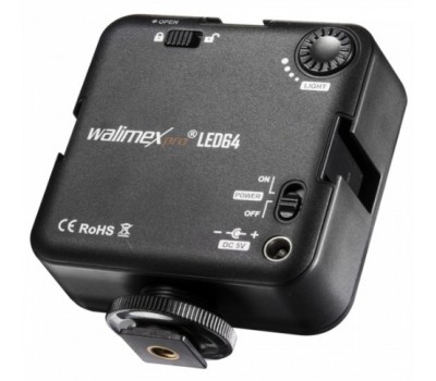 The video light, which is powered by 4 AA batteries, is the ideal solution for all Actioncams, like e.g. GoPro Hero, Camcorders and DSLR and with its 64 powerful LEDs it ensures high light gain and thereby sufficient brightness in case of inappropriate ambient light. This is of advantage when shooting in the dark or in insufficiently illuminated rooms. The most convenient feature is the fact that the light intensity can be infinitely dimmed.