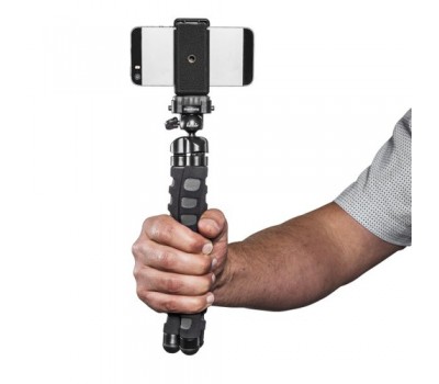 When used as a table tripod, the kaleido cuts a fine figure. Thanks to the steady legs and non-slip rubber feet, the kaleido flex also be used as a table tripod. Kaleido flex can be adjusted to a working height of 10 to 27 cm. Using a 1/4-inch connector, you can attach light to medium-weight compact and system cameras, DSLR, DSLM and camcorders weighing up to 1.2 kg. The kaleido flex can be used as a hand tripod and facilitates and stabilises your shots, whether for shake-free videos or detailed photos.