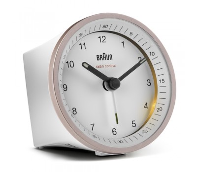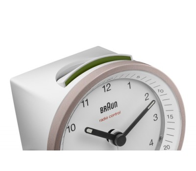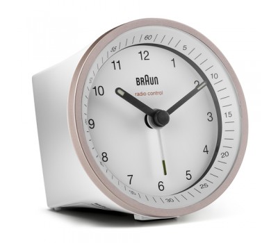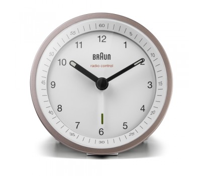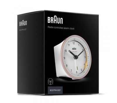 This Braun radio controlled alarm clock measures 80mm x 80mm x 57.5mm and is available in three colours. It has an easy to read dial layout, crescendo alarm, snooze function and quiet precision quartz movement..