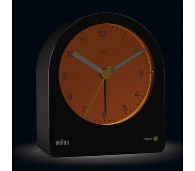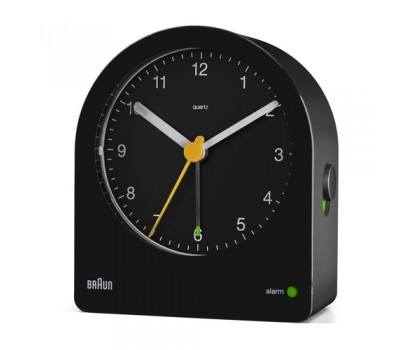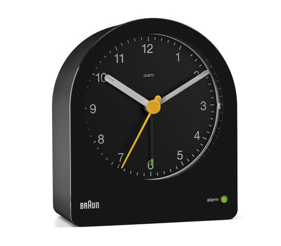 The BC22 Classic Analogue Alarm clock is unique in form. Its silhouette is derived from the AB 2 clock designed in 1984 by Dieter Rams. The clean simplistic dial and contrasting hands that feature luminous tips offers great legibility. The addition of the iconic yellow second hand is synonymous with Braun’s award-winning design history and long-lasting aesthetics.