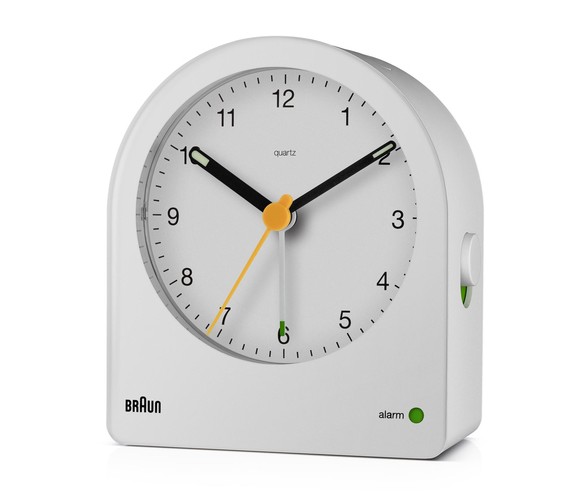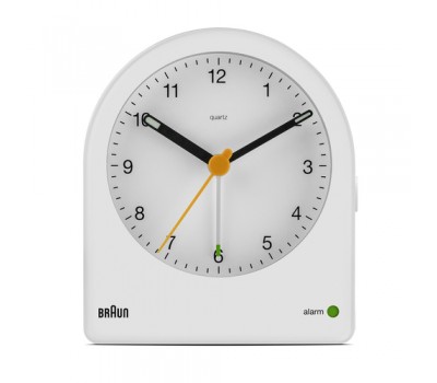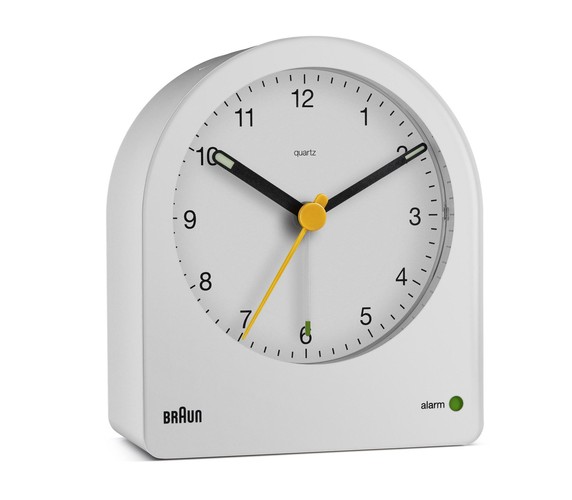 The BC22 Classic Analogue Alarm clock is unique in form. Its silhouette is derived from the AB 2 clock designed in 1984 by Dieter Rams. The clean simplistic dial and contrasting hands that feature luminous tips offers great legibility. The addition of the iconic yellow second hand is synonymous with Braun’s award-winning design history and long-lasting aesthetics.