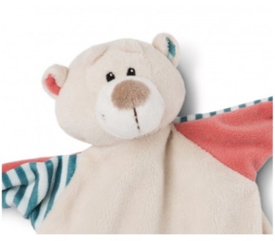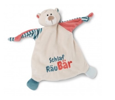 The cuddle cloth 'SchlafRäubear' represents a cute NICI bear in bright colors. The cuddly original NICI plush of the cuddle cloth will certainly become the favorite of the new earthling and invites to cuddle, feel and snuggle. Perfect for all babies.