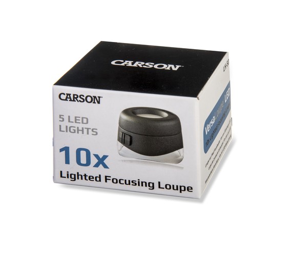 The LH-50, VersaLoupe™ 10x Power 1″ LED Lighted Focusing Loupe Magnifier is a 10x dual lens stand magnifier. It is a crystal clear acrylic loupe with an adjustable focus. The VersaLoupe™ LED has 5 bright LED lights. Simply twist the eyepiece to focus. It is perfect for coins, stamps & photography.