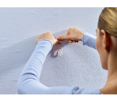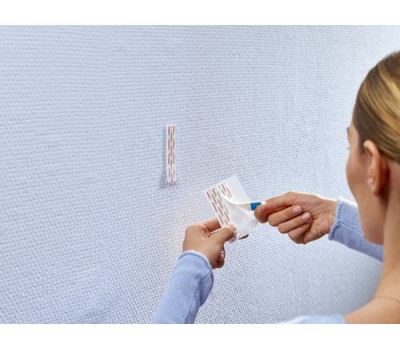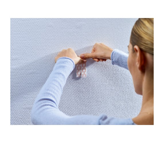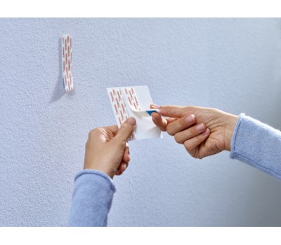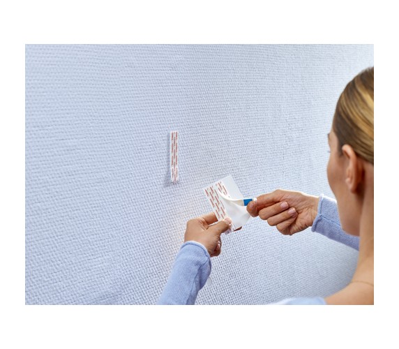 - Apply the Adhesive Strip to the rougher surface, so in the case of wallpaper or plaster, always apply it to the wall, with the blue tab facing the wall. Before using, make sure that your surface is strong enough to take the weight of the object you want to attach.