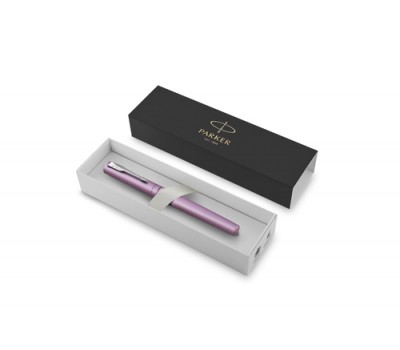 Stylish design meets reliable performance, Vector XL Fountain Pen suits any modern lifestyle. The satin metallic lilac finish is complemented by chrome trims and the signature PARKER arrow clip. Featuring a unique transparent shell revealing the inner workings of the pen. The durable, large stainless steel nib delivers a comfortable and consistent writing experience. Presented in a PARKER gift box, it is the perfect gift for students and young professionals looking for a modern and high-quality pen, benefitting from Parker’s expertise in fine writing.