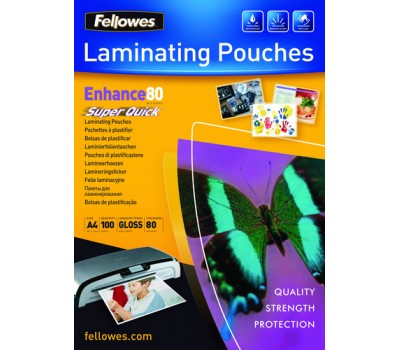 - Laminate 40% faster with Fellowes SuperQuick™ laminating pouches