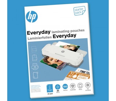 The HP Everyday laminating pouches Starter Set is perfect for you if you regularly laminate different formats. The set comprises 25 films each of A4, A5, A6 and business card size to make your items impress. With a film thickness of 80 microns, these laminating pouches are suitable for all laminating devices that support this film thickness, regardless of the manufacturer. The transparent laminating films are for hot lamination and have a glossy surface. The HP Everyday laminating pouches Starter Set is available in a folding box with a total of 100 pouches.
