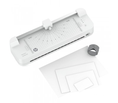 Compared to the HP OneLam 400 A3, the HP OneLam Combo A3 scores with an integrated cutter, which makes it even easier to cut your documents in straight, curled or perforated format. Through use of the angle presets and centimetre grid, your laminated documents can easily be cut to the desired size. Like the other laminators in the HP OneLam range, this handy backloader is suitable for both hot and cold lamination. With a film thickness of 75/80 to 125 microns, you can protect your pictures, timetables or important documents from business cards up to A3 format from dirt and moisture.