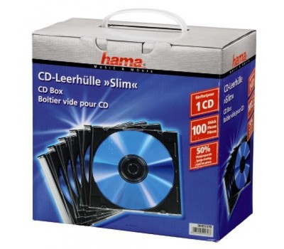 - 100 SlimBox jewel cases in carton with carrying handle.