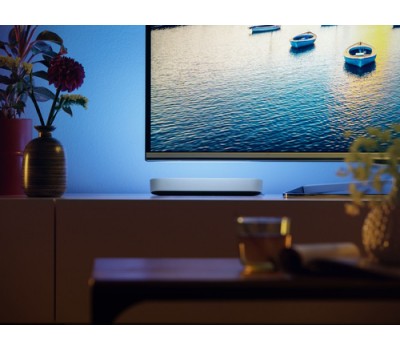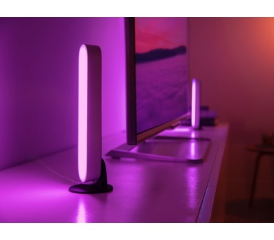 Create a wash of colourful smart light with the sleek design of the Play light bar in white. This Play light bar, which includes a power supply that can connect up to three light bars, can be stood upright, laid horizontally or placed onto the back of your TV with the included mounts.