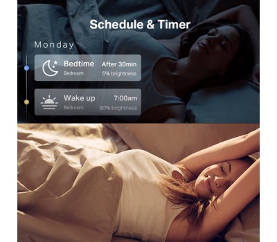 Create regular schedules and countplans to turn on/off with the brightness you set. Sunrise and sunset modes allow the light to activate automatically according to your time zone.