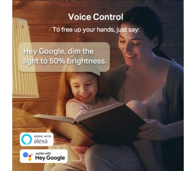 Works with Amazon Alexa and Google Assistant to free up your hands. Just say “Alexa, turn on the light” or “Hey Google, dim my bedroom lights.”