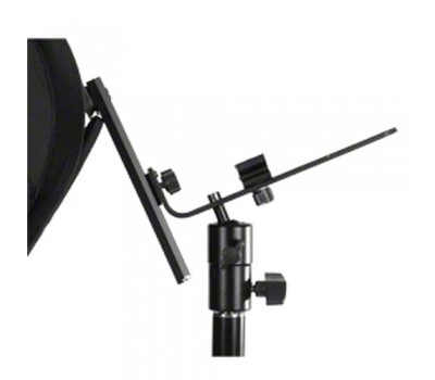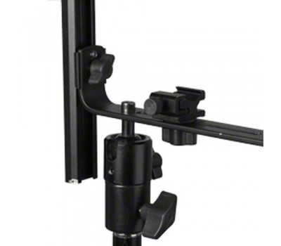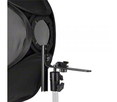 You compact flash device can be mounted on the integrated flash holder. This holder is height adjustable and therefore particularly flexible. Thus, you can use flash devices with a height up to approx. 24cm. The length rail is with lengthened slot opening even more flexible, so that you can use compact flashes with a bigger tilt angle. Thanks to this convenient rail, you can set up your ultra-compact flash studio within seconds. You can start off immediately and benefit from the soft and even light.