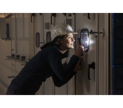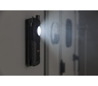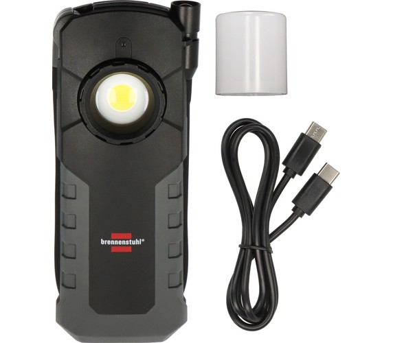 The Professional Rechargeable LED Inspection Light HL 1000 ACW is an extremely robust Work Light with a replaceable 3.7V/2.5Ah Li-Ion battery and a charge level indicator, designed for illuminating confined and hard-to-reach areas. This LED Torch with IP54 protection class has four different switching levels (spot - COB: 100%-50%-25%) to meet every requirement. The Inspection Light can be conveniently charged via the USB C charging interface using the USB C charging cable supplied or alternatively via the separate wireless charging pad (not included). Thanks to the integrated magnet on the back and the 360° rotatable hook, the Mechanic's Torch is extremely versatile and offers flexible application options in workshops, garages or even when working on vehicles.