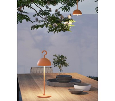Static living was yesterday' now we want and need changes in ambience every now and then. This is where the HOOK lamp comes in handy, because it can be used multifunctionally. With its concise large hook, it is suitable as a pendant lamp, and with its magnetic base, it becomes a table lamp in no time at all. Made of robust aluminium and classified with IP65, the light cuts a fine figure both indoors and outdoors. Via a touch sensor on the underside of the shade, the light can be dimmed and the light colour can be varied in 2700K and 3000K. But that's not enough flexibility: The shade of the HOOK can be moved by light pressure along the bar.