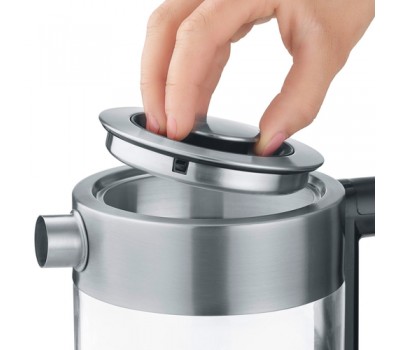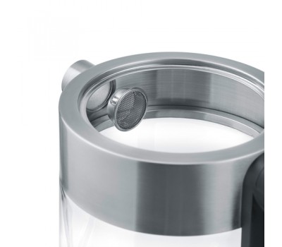 The noble 1-liter glass water boiler WK300 is a real eye-catcher in every modern kitchen. Thanks to the Glass body made from heat resistant DURAN® Glass and stainless steel housing, tea lovers can watch their water bubble away in an instant with 2.000 watts of power. The completely removable lid ensures easy filling and very easy cleaning of the inner housing. The stainless steel limescale filter is just as easy to remove and wash.