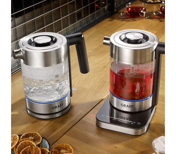 Drinking tea is in vogue - whether as a healthy pick-me-up, as a short break in the home office or as a relaxing "me-time" in the afternoon. The tea trend is benefiting from the strong growth in interest in healthy nutrition, natural foods, and now also the right accessories for preparation. The GRAEF WK300 glass water boiler scores with its modern-puristic design thanks to its elegant glass body. Another plus: The hot water does not come into contact with plastic at any time in this model and thus ensures pure taste and the special tea enjoyment.
