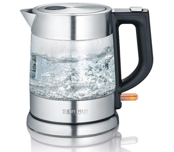 Compact, powerful electric kettle, high-quality glass and stainless-steel design with 360° central cordless system.