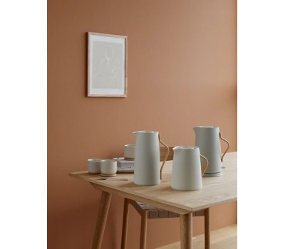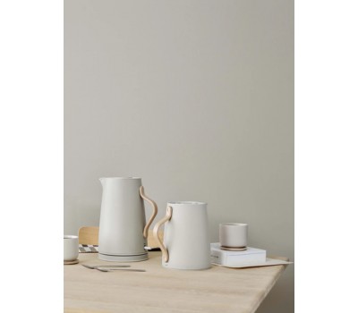 The Emma electric kettle is an aesthetically attractive, sand coloured steel jug with a handle in beech wood that gives the jug a characteristic Nordic look. The soft sand colour complements both light and dark coloured kitchens. The cordless kettle can hold 1.2 l. and is supplied with a removable limescale filter, dry boil safety switch and switches off automatically when the water has boiled.