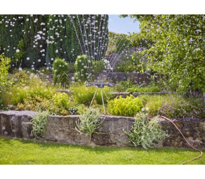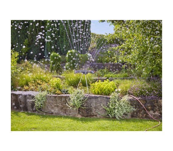 With this practical sprinkler stand, ground sprinklers become even more flexible in their application. The stand transforms all GARDENA circular, oscillating, spray and multi-area sprinklers into high rise sprinklers. Now, not only lawns and small plants can be watered, but terraced gardens, taller plants and vegetable or flower beds are also supplied with water evenly and from higher up. The spray range of the installed high sprinkler head also increases by 0.5 to 1 m.