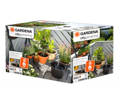 Plant irrigation for holidaysWith the GARDENA Holiday Watering Set up to 36 potted plants can be automatically watered. In this way you can conveniently water your plants without the watering can – and you will have an ideal substitute when you are absent. Over three different distributors each with 12 outlets various water supply requirements for certain plants can be assigned. The fully sealed low-voltage transformer can be used both indoors and outdoors.
