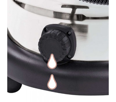 The TH-VC 1930 SA wet and dry vacuum cleaner is an indispensable helper which provides good service to the ambitious DIY enthusiast on cleaning jobs in the home, workshop and garage. Its stainless steel tank has a capacity of 30 liters for devouring both dirt and liquids, with a drain screw provided for the user-friendly and clean disposal of the vacuumed liquid. A practical blow connector is also provided. An integrated socket with automatic function and delayed switch-off enables this cleaner to be used as a vacuum extraction system for electric tools.