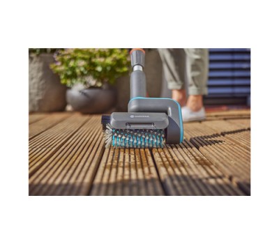 The GARDENA AquaBrush Barrel Brush Universal ensures effortless and effective cleaning of wooden surfaces, e.g. wooden patio floors.