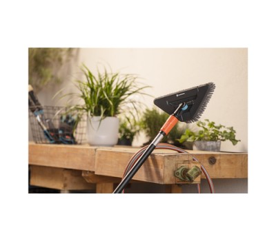 The GARDENA Cleansystem Handle Brush soft flex for gentle cleaning of larger hard-to-reach areas such as greenhouses or a conservatory roof.