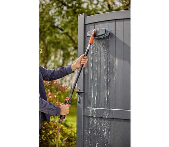 The GARDENA Cleansystem cleaning set soft with handle ensures optimal and gentle cleaning of large surfaces, for example glass conservatories.
