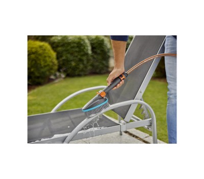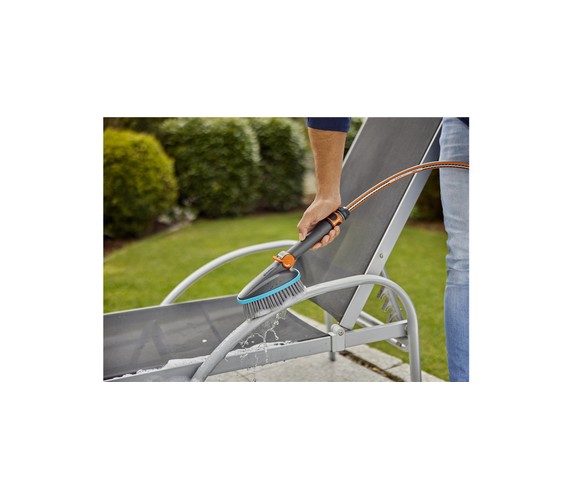The non-slip handle ensures safe and secure handling, while the soft bristles are gentle on delicate surfaces. The wash brush can be operated with just one hand and allows precise cleaning. Simply connect to the water hose with just one click for gentle cleaning of small, sensitive surfaces such as garden fences.