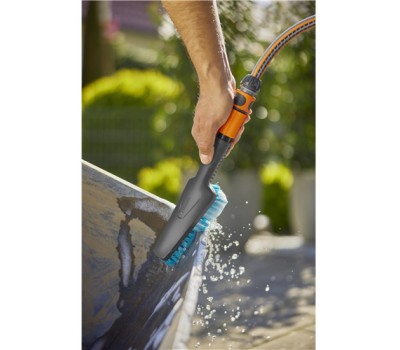 The GARDENA Cleansystem Hand Brush S hard ensures powerful cleaning of smaller, hard-wearing outdoor surfaces