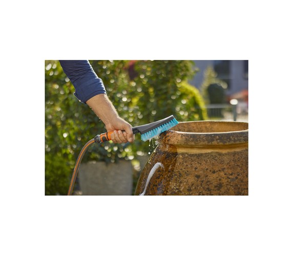 Flexible cleaning with the hard hand-held brush – regulate or shut off the water flow as required