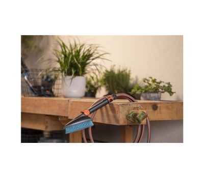 The non-slip handle enables safe and stable handling, while the hard bristles remove even stubborn dirt. The wash brush can be operated with just one hand and allows precise cleaning. Simply connect to the water hose with just one click for scrubbing of small, hard surfaces such as bins.