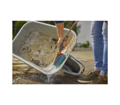 The powerful hand-held brush with fully adjustable water flow function offers full control over the amount of water used during cleaning. The water supply can be started and stopped using the lever. The lever on the brush head can be used to infinitely adjust the amount of water with just one hand. This practical function allows targeted and efficient cleaning on hard surfaces; an essential tool for a wide range of cleaning tasks.