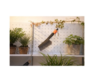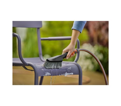 The non-slip handle ensures safe and secure handling, while the soft bristles are gentle on delicate surfaces. The flat design ensures precise cleaning, even in hard-to-reach areas. With the hand-held brush, corners and edges are no longer a problem. Simply connect to the water hose with just one click for cleaning small, delicate surfaces such as garden furniture.