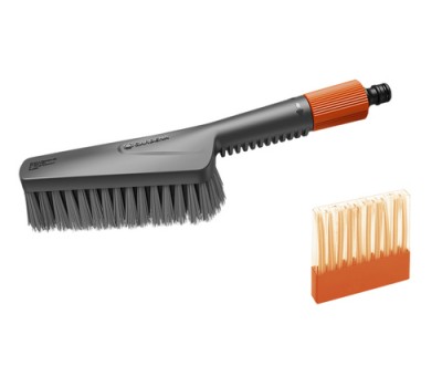 The GARDENA Cleansystem Wash Set with Hand Brush S soft ensures gentle cleaning of small, delicate outdoor surfaces.