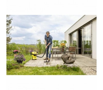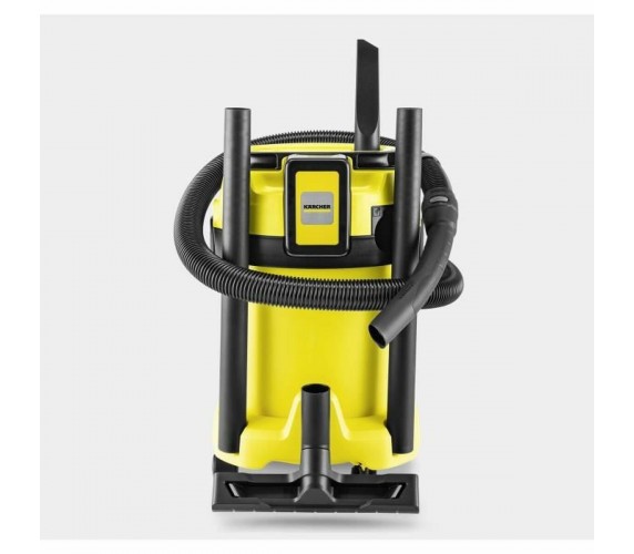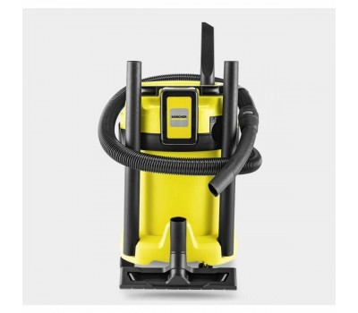 Vacuuming that knows no limits: the battery-powered WD 3-18 wet and dry vacuum cleaner runs on the 18 V Kärcher Battery Power battery platform and offers maximum flexibility, compact design and freedom of movement. The device perfectly combines a 2-metre long suction hose and a clips floor nozzle and can remove wet, fine or coarse dirt in no time at all. The device is also equipped with a robust and shock-resistant 17-litre plastic container, single-part cartridge filter as well as a fleece filter bag. The suction hose storage is space-saving; simply hang it securely on the device head. Further features include the practical blower function for areas where vacuuming is not possible, the storage shelf for tools and small items, the rotary switch to easily turn the device on and off, the ergonomically formed carrying handle as well as the "Pull & Push" locking system that allows the container to be easily opened and closed. The parking position provided on the bumper allows the tubes and floor nozzle to also be stored quickly and conveniently when taking a short break from work.