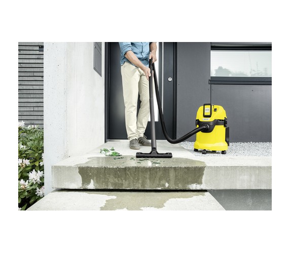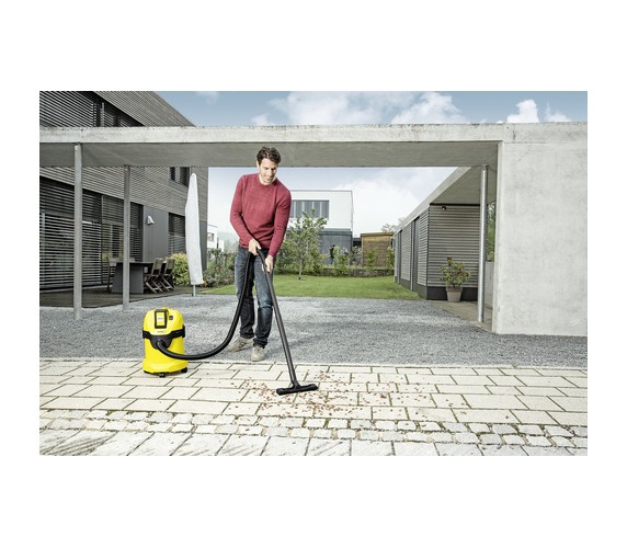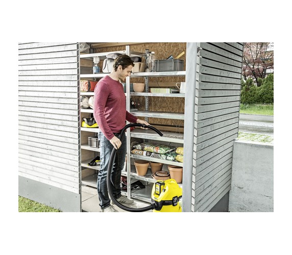 The WD 3 Battery is just as functional as a multi-purpose vacuum cleaner with a cord, but it does not need to be plugged into the mains. Depending on the battery, the battery runtime is 15 to 30 minutes (battery not included in the scope of supply). The flexible cordless multi-purpose vacuum cleaner also has a robust and impact-resistant plastic container with a capacity of 17 litres, as well as a cartridge filter for easy vacuuming of dry and wet dirt without having to change the filter. The flow-optimised suction hose and the smart clips floor nozzle with mixed insert help to ensure optimal dirt pick-up and guarantee perfect cleanliness. Another practical detail is the detachable handle, which makes it possible to attach accessories directly to the suction hose. The practical parking position allows convenient parking of the suction tube and floor nozzle when taking a break from work. The WD 3 Compact Battery makes cleaning a pleasure thanks to additional features such as the blower function, Pull & Push locking system, ergonomic carrying handle and accessory storage solution. And thanks to its compatibility with the 36 V battery platform, batteries from other 36 V Battery Power devices can also be used in the WD 3 Battery.