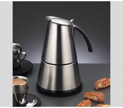 ROMMELSBACHER's new Espresso Maker ElPresso mini is the best prerequisite for a 'dinner for two'. Its visual appearance by itself is already eye-catching: perfect design, stainless steel finish and an ergonomically-curved stainless steel handle with heat-insulated synthetic material on the inside. The quick lock makes sure that the coffee jug can be opened with just a quarter turn and shut from 4 different positions (perfect for right-handed and left-handed persons). No matter whether 4 cups or – because of the filter insert included in the delivery scope – 2 cups of espresso are prepared, it is easy and convenient to operate. Just insert water and ground espresso, place the cordless jug on the power base, switch on and it will get going. As soon as the espresso is ready, the appliance switches off automatically. Simply perfect!