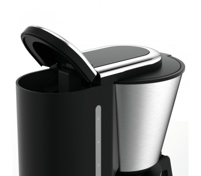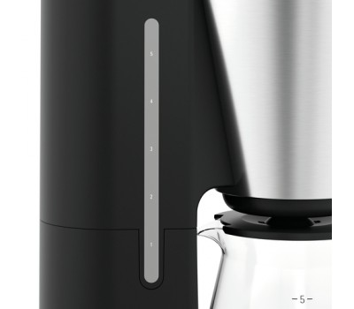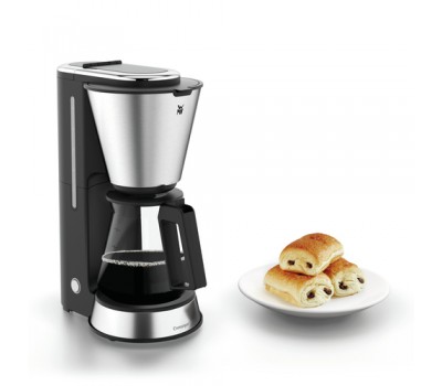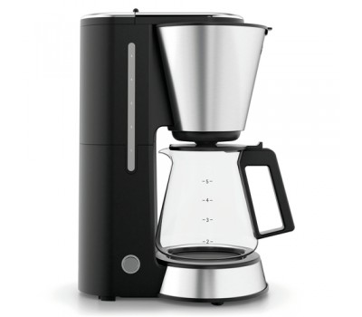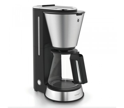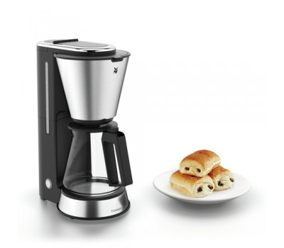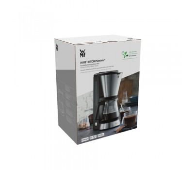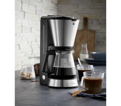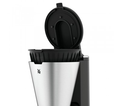Filter coffee is trendy again. The compact, attractive WMF filter coffee machine with Cromargan® casing and attractive glass jug for five cups brews the exact amount required in smaller households. Simply sit back and enjoy aromatic hot coffee from the first cup; thanks to the WMF Hot Brew technology and WMF Aroma Perfection with aroma intensity adjustment. The warming plate with automatic shut-off keeps the coffee in the Aroma glass jug hot for a long time.