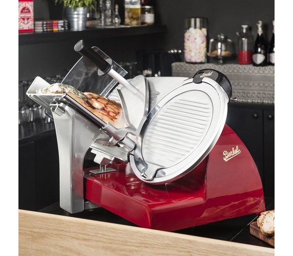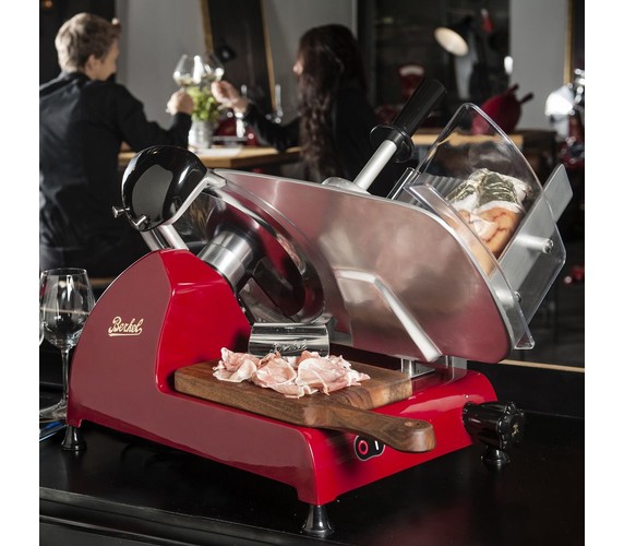 RED LINE encompasses all the technology of professional Berkel meat slicers. This professional electric slicer for home use is elegant and lightweight and is made of a special aluminium alloy.