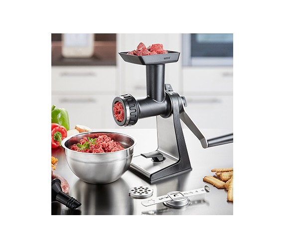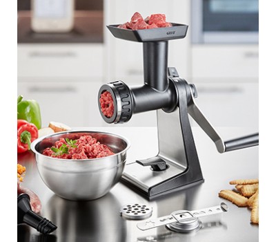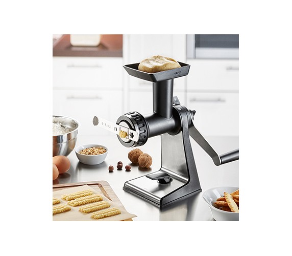 Sweet or savoury – the meat mincer comes with practical accessories for home cooking. Its sophisticated construction guarantees easy meat and veg grinding, and spritz biscuits will also come out in perfect shape!