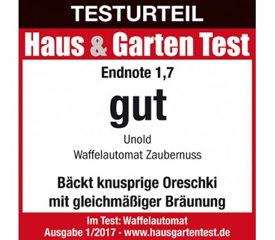 Whether it's the sweet classic Oreshki (Russian witch hazels) or a savoury version with a hearty filling: the Witch Hazel WAFFLE MAKER with automatic temperature control delivers 24 crispy waffle halves in a matter of minutes, which can then be filled to taste. Ceramic-coated plates and the dough collecting groove ensure easy cleaning, while the heat-insulated cool-touch handle with integrated locking mechanism, the function control light and anti-slip feet ensure safety. Can be stored upright to save space. Recipe ideas can be found in the operating instructions.