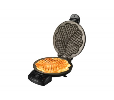 With the Diamant WAFFLE MAKER, heart-shaped waffles can be prepared in no time at all. The continuously adjustable temperature control ensures the perfect degree of browning - and the non-stick coated waffle plate with batter collecting channel makes cleaning easy. The baking light shows "On/Off" and "Ready". Anti-slip feet and overheating protection ensure safety, and the cable storage saves space. Recipes can be found in the operating instructions.