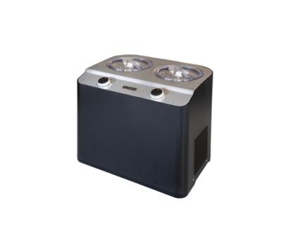 The Doppio ice cream maker is ideal for making different types of ice cream at the same time, as it has two separate ice cream containers with a capacity of 1.2 liters each. Thanks to the self-cooling compressor, you can make creamy ice cream in just 30 minutes. It is easy to use thanks to the rotary knob and the stainless steel ice cream containers are removable and easy to clean. With a freezing range of -35 °C and a durable motor, this ice cream maker is designed to be used continuously.