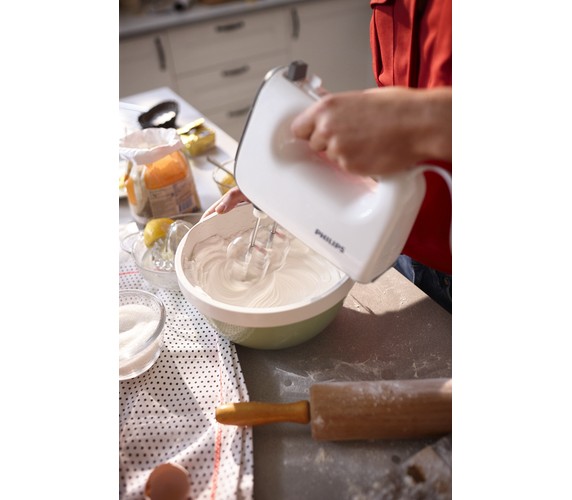 The Philips mixer helps you create delicious breads and fluffy cakes for your family. Air conic mixing allows shorter whipping time and smoother cake batter. Its powerful 450 W motor will make light work of the toughest of doughs.