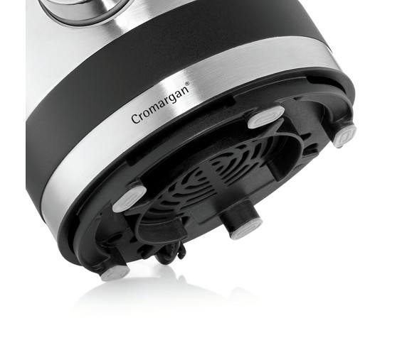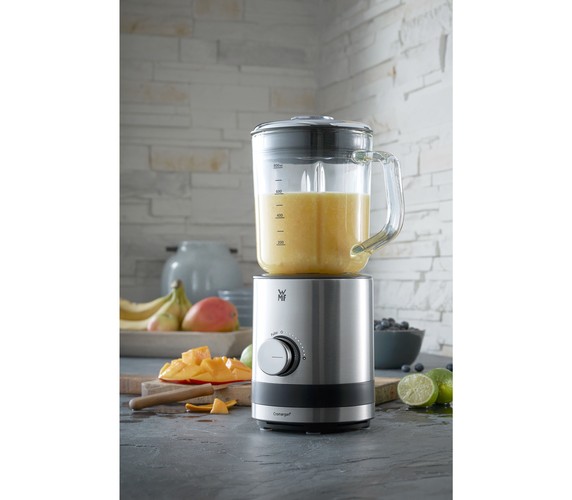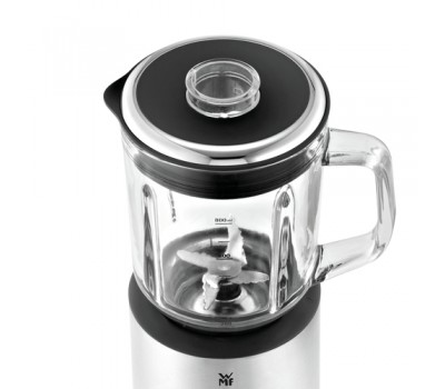 The smallest Cromargan® blender has an impressively powerful motor: 400 W, 20,000 rpm, 241 km/h. Five speed levels and a pulsation mode are available to suit your requirements. Thanks to Perfect Cut, the blender is equipped with a 6-wing stainless steel blade. The removable 0.8 litre glass jug and its practical lid, as well as the refilling opening and integrated measuring mug make it easier to use. The rubber base ensures safe placement.