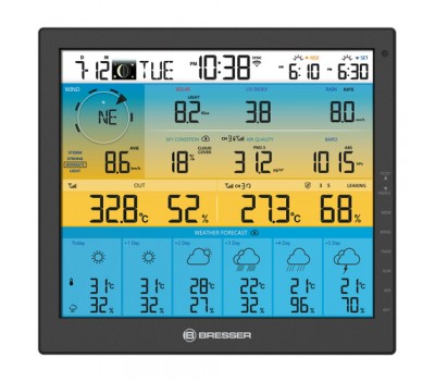 Stay on top of the weather with the BRESSER 6-day 4CAST PRO SF 7-in-1 Wi-Fi weather Station with a solar-powered sensor! The weather station displays a 6-day weather forecast with maximum/minimum temperature readings, and also tells you the chance of rain. It also features a 10-inch colour display, which ensures that all the weather stats are easy to read. The modern Wi-Fi weather station with a solar-powered sensor obtains the forecast data via the Internet from the ProWeatherLive platform. In addition to the weather forecast, the weather station also displays the local visibility and cloud cover.