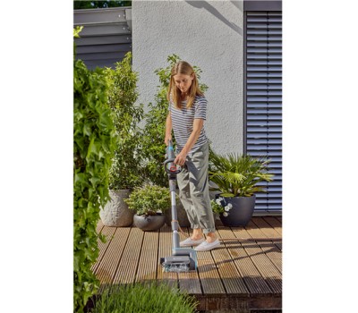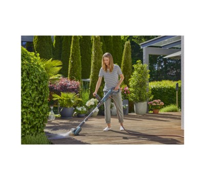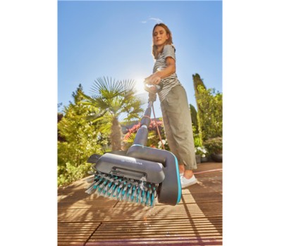 The GARDENA Battery Multi Cleaner AquaBrush Patio Solo ensures effortless cleaning of wood, WPU, stone, terraces, decks and uneven surfaces.